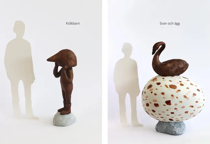 Små modeller av skulpturerna från Emma Kronvalls skissförslag