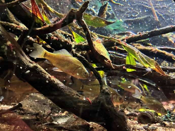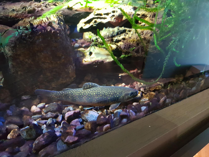 Här syns en juvenil bäckröding som kläckts och växt upp hos oss på Vänermuseet.